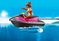 Der Wasserscooter kann zusätzlich mit einem Playmobil-Unterwassermotor (separat erhältlich) ausgestattet werden, der schnelleres Schwimmen auf der Wasseroberfläche ermöglicht.