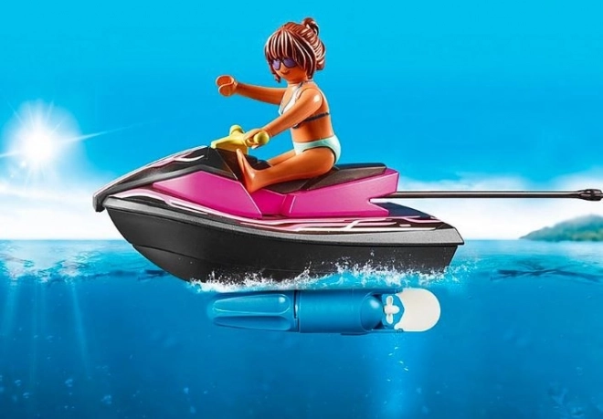 Der Wasserscooter kann mit einem Playmobil-Unterwassermotor (separat erhältlich) ausgestattet werden, um noch mehr Spaß im Wasser zu haben.