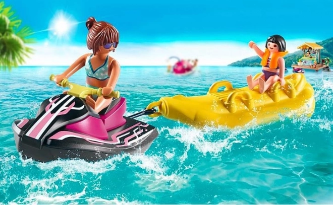 Erleben Sie unvergessliche Ferienerlebnisse mit dem Playmobil Family Fun Starter Pack. Dieses Spielset enthält alles, was Sie für ein Wasserabenteuer brauchen – Wasserscooter, Bananenboot und Figuren. Kinder können dieses Set für fantasievolle Spiele nutzen und Geschichten über Wassersportaktivitäten erfinden.