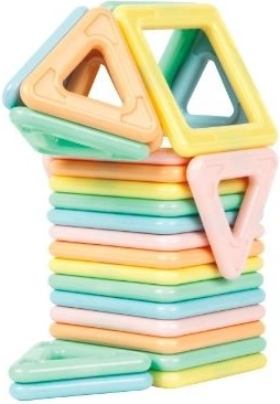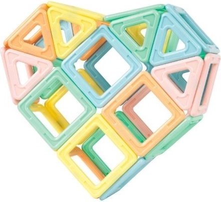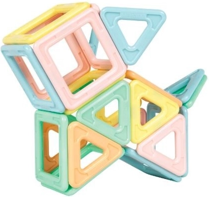Das Set enthält 18 Quadrate und 12 Dreiecke in Pastellfarben, die den Bau verschiedenster Modelle ermöglichen.