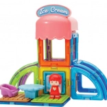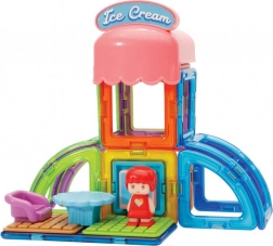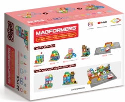 Das Baukastenset Magformers Kleinstadt Konditorei besteht aus 14 magnetischen Formen und 8 funktionalen Zubehörteilen. Es ermöglicht die Kreation architektonisch vielfältiger Konditoreiensationen nach eigenem Fantasie. Durch das Hinzufügen weiterer Magformers-Teile werden Ihre Bauten noch größer und abwechslungsreicher. Die resultierenden Strukturen haben die Form eines halb geöffneten Querschnitts, bei dem sowohl die äußere als auch die innere Gestaltung sichtbar ist und variiert werden kann.