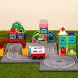 Dieses Set ist ideal für kreative Kombinationen mit anderen Sets der „Kleinstadt“-Reihe. Die Serie umfasst Sets wie Krankenhaus, Markt, Bank und Bus, die untereinander beliebig kombiniert und die Kleinstadt nach Ihrem Vorstellungsvermögen erweitert werden können.