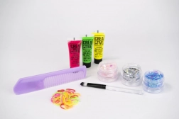 Das Creative Set zum Färben und Verzieren der Haare ist die perfekte Wahl für Kinder, die gern mit Frisuren experimentieren. Die temporären Farbgele und Glitzer ermöglichen ausdrucksstarke wie auch zarte Effekte ohne dauerhafte Veränderung. Dank einfacher Anwendung und praktischer Zubehörteile ist Spaß zu Hause und auf Partys garantiert.