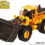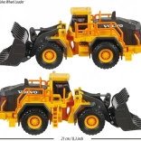 Lizenzierter VOLVO-Radlader ohne Motor mit Licht- und Soundfunktion. Die Kabine ist aus Metall gefertigt. Weiche Gummireifen meistern problemlos anspruchsvolles Gelände auf der Baustelle. Bewegliche Teile: zu öffnende Hecktür, Schaufel und Kabine, dank Steuerung kann das Fahrzeug leicht nach rechts und links lenken. Länge: 21 cm.