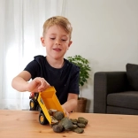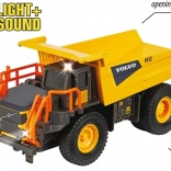 Lizensierter VOLVO-Kipper ohne Motor mit Licht- und Soundfunktion. Das Fahrerhaus ist aus Metall gefertigt. Weiche Gummireifen überwinden problemlos schwierigen Untergrund auf der Baustelle. Bewegliche Teile: Motorhaube und Kippmulde. Länge: 20 cm.