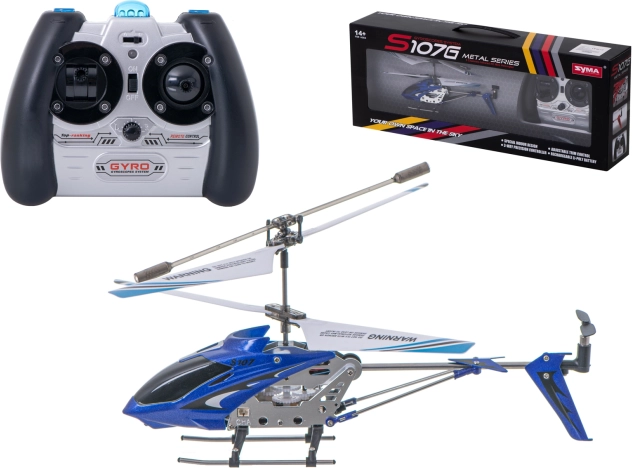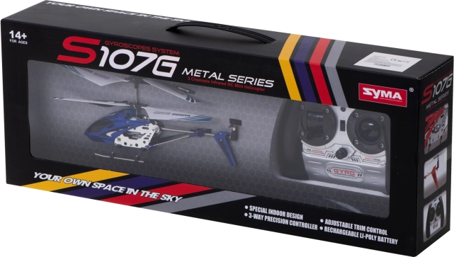 Der leichte und robuste RC-Helikopter SYMA S107G mit Metallrahmen ist ideal für das Fliegen in Innenräumen. Stabile Steuerung gewährleistet das Gyroskop GYRO und ein Paar gegenläufiger Rotoren (Co-axial). Er bietet eine 3,5-Kanal-Steuerung, Reichweite bis zu 15 m und Flugzeit von 7–10 Minuten pro Ladung.