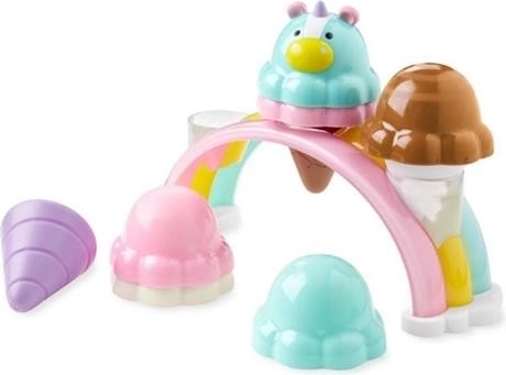 Das Set enthält 5 Kugeln, eine besondere Einhorn-Kugel, 3 Waffeln und einen Regenbogenständer – alles, was Kinder zum Servieren von Eis brauchen.