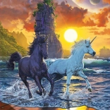 Genießen Sie Entspannung beim Zusammensetzen eines wunderschönen Puzzles mit dem Motiv Einhörner am Strand. Die Packung enthält 1000 Teile, außerdem ist Kleber gratis enthalten, um das fertige Bild mit den Maßen 48 × 68 cm einfach zu fixieren.