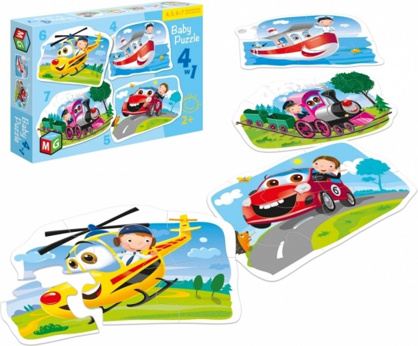 Puzzle Verkehrsmittel 4v1 ist ideal für Kinder ab 2 Jahren, die beginnen möchten, ihre ersten Puzzle zu legen. Jedes Puzzle enthält eine unterschiedliche Anzahl von Teilen für progressive Schwierigkeit und Fähigkeitenentwicklung.