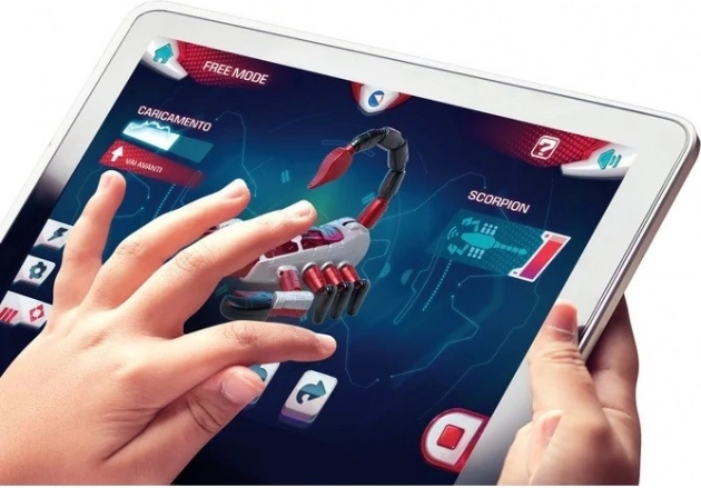 Viele Teile, Zahnräder und Motoren machen den Skorpion-Roboter zu einem einzigartigen Bausatz. Die Fernsteuerung ist dank Hochfrequenzbefehlen und einer speziellen App möglich.