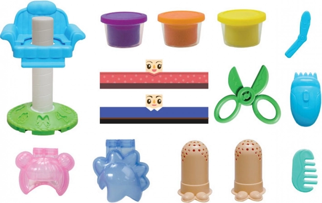 Formt Knet-Haare, kombiniert Farben und erfindet originelle Frisuren. Kinder schlüpfen in die Rolle des Friseurs – sie können die Haare wachsen lassen, sie schneiden, kämmen und immer wieder neu formen. Dieses Friseur-Set aus Knete bietet stundenlangen Spielspaß und unterstützt freie Kreativität.