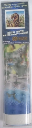 Im Set finden Sie eine komplette Ausstattung: Leinwand mit vorgedrucktem Muster und Klebeschicht, Applikationsstift, Schale, Wachs sowie ein Set farbiger Steinchen. Für ein bequemes Arbeiten wird empfohlen, die Schutzfolie der Leinwand nur Abschnitt für Abschnitt zu entfernen, damit der Kleber sauber bleibt und die Steinchen gut haften.