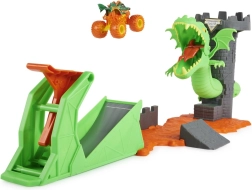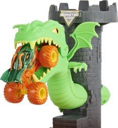 Erlebe eine epische Show mit dem Monster Jam Dueling Dragon Spielset. Lade den Truck in die Abschussvorrichtung, spring über die Lava und ziele auf den Burgturm – mit einer präzisen Landung besiegst du den Drachen! Der Mechanismus lässt sich schnell zurücksetzen, sodass die Action immer wieder von vorn beginnen kann.