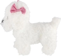 Rosa Schleifchen an den Öhrchen verleihen dem Hündchen einen charmanten Look und fördern die visuelle Wahrnehmung der Kinder.