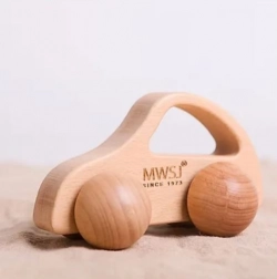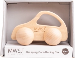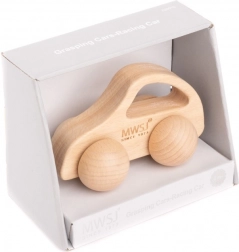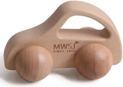 Klassisches Holzauto aus Buchenholz in natürlichem Farbton – ein zeitloses Spielzeug und eine attraktive Dekoration fürs Kinderzimmer.