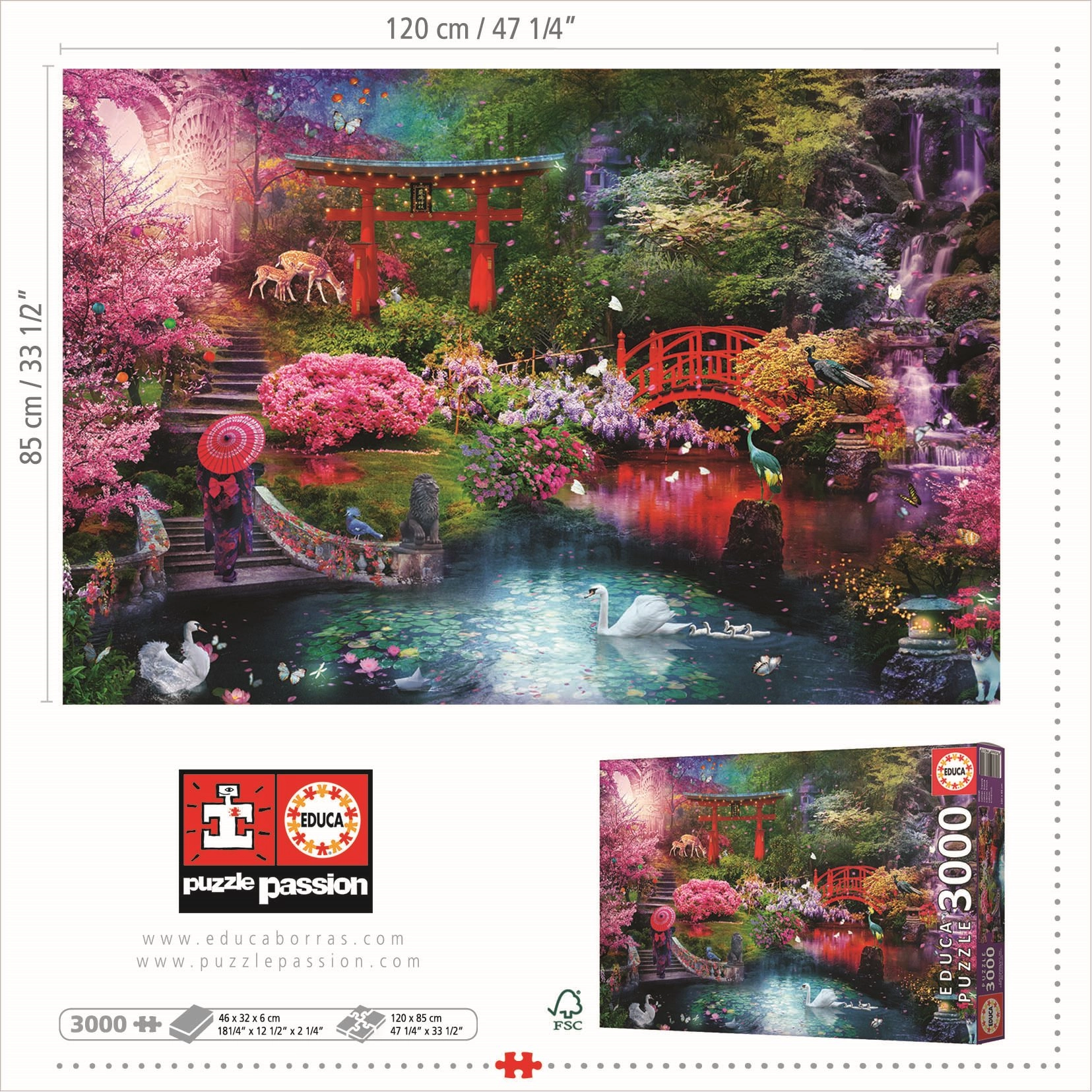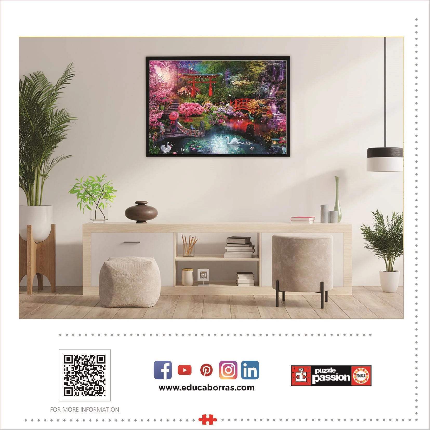 Genießen Sie stundenlange, konzentrierte Unterhaltung mit dem EDUCA-Puzzle mit dem Motiv Japanischer Garten. Realistische Farben, scharfe Details und hochwertiger Druck unterstreichen den Gesamteindruck, der nach dem Zusammensetzen als Innendekoration hervorragend zur Geltung kommt.