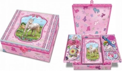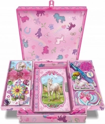 Entdecken Sie praktische Ordnung und ein zauberhaftes Design: Die dekorative Schachtel mit Einhörnern entfaltet sich beim Öffnen zu zwei seitlichen Fächern, unter denen sich ein sicherer Platz für Ihr Tagebuch verbirgt. Ideal fürs Kinderzimmer und als originelle Aufbewahrungsbox für Kleinigkeiten.