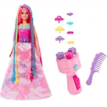 Die Barbie-Puppe aus dem Märchenreich Dreamtopia hat extra langes Haar mit Regenbogensträhnen, die direkt zum Stylen einladen. Einfach 2–3 Strähnen in das Flecht- und Drehgerät einsetzen und mit einem Knopfdruck bezaubernde, gedrehte Frisuren kreieren. Drei Regenbogen-Clips halten die Frisur an Ort und Stelle, während bunte Spangen den finalen Look abrunden.