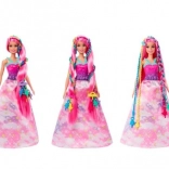 Die Puppe in einem glitzernden Kleid mit Sternchen hat extra langes, mehrfarbiges Haar – ideal fürs Styling und zum Frisörspielen.