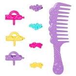 Bunte Clips, Spangen und ein breiter Kamm erleichtern das Entwirren und sorgen für sicheren Halt neuer Frisuren ohne Ziepen.