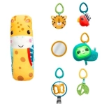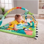 Bildende Spielmatte 3 in 1 „Tropischer Wald“ ist ideal für Kinder vom Neugeborenen bis zum älteren Alter. Die weiche Matte bietet einen komfortablen Platz zum Spielen und sechs hängende Spielzeuge stimulieren die Sinnes- und Motorikfähigkeiten. Bei der Bauchlage können die ausgerichteten Bögen die Spielzeuge in erreichbare Nähe bringen, während das kissenförmige Giraffenkissen Unterstützung bietet.