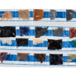Die Leinwand ist mit Klebstoff beschichtet und mit Folie bedeckt. Die Steinchen werden auf die schrittweise freigelegten Teile der Leinwand aufgetragen, um Verschmutzungen der Klebeschicht zu vermeiden.