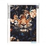 Erstellen Sie ein schönes Bild von einem Tiger in Blumen mit diamantener Brillanz. Das Bild ist ein kreatives Projekt mit klarer Anleitung und Farbcode zum einfachen Fertigstellen.