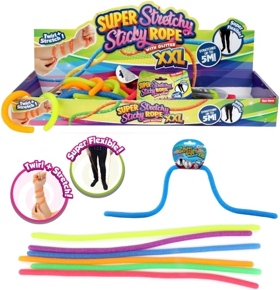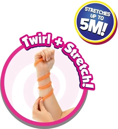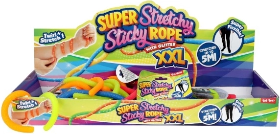 Unser Super Stretchy Klebriger Gummi XXL kann bis zu einer Länge von 5 Metern gedehnt werden, was viele Spiel- und Kreativmöglichkeiten bietet.