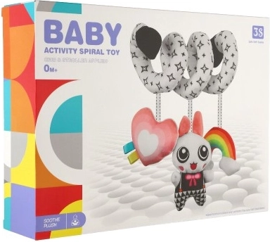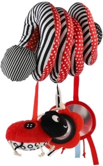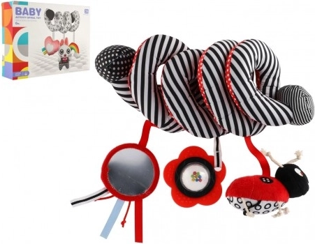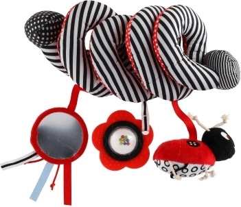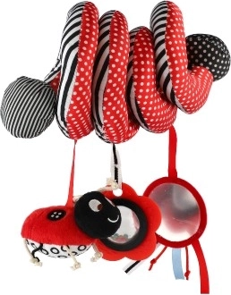 Dieses wunderschöne Plüschspielzeug in kontrastreichen Farben ist ideal für Ihr Baby. Mit Rasseln und einem Spiegel ausgestattet, fördert es die sensorische Wahrnehmung und regt die Fantasie Ihres Kindes an. Durch die spiralförmige Konstruktion lässt sich das Spielzeug einfach am Bettchen, Autositz oder Kinderwagen befestigen.