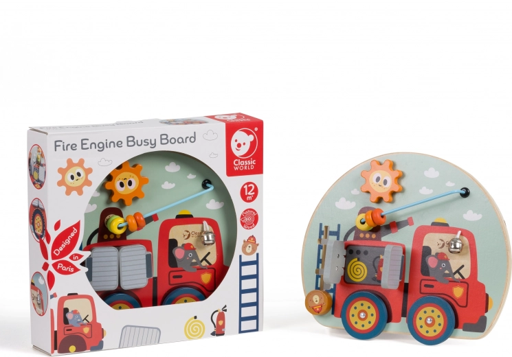 Entdecken Sie einen unterhaltsamen und sicheren Weg, die Fähigkeiten Ihres Kindes zu fördern. Die hölzerne 6-in-1-Motoriktafel von CLASSIC WORLD mit Feuerwehrmotiv unterstützt Feinmotorik, Hand-Auge-Koordination und Kreativität bei Kindern ab 12 Monaten. Hochwertige Verarbeitung und ungiftige Farben gewährleisten Langlebigkeit und Sicherheit beim täglichen Spielen.
