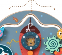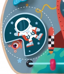Die Rakete mit Planeten und Sternen weckt auf natürliche Weise die Neugier und lädt Kinder ein, die einzelnen Elemente zu erkunden – vom Labyrinth bis zu den Drehrädchen.