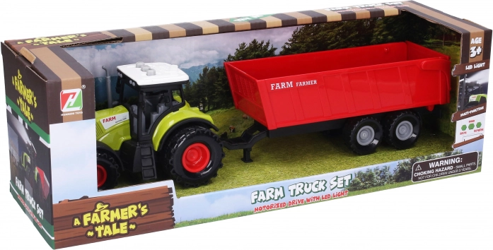 Entdecken Sie die Welt der landwirtschaftlichen Abenteuer mit diesem robusten Traktor mit Anhänger. Der Schwungradantrieb sorgt für einfache Handhabung und geschmeidige Bewegungen nicht nur auf dem Bauernhof. Die Länge des Traktors beträgt beeindruckende 36 cm, was ihn für verschiedene Spiele großartig macht.