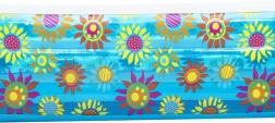 Der aufblasbare Pool ist mit einem lebhaften Blumendesign verziert, das seine Attraktivität erhöht und zum Spielen und Entspannen einlädt.