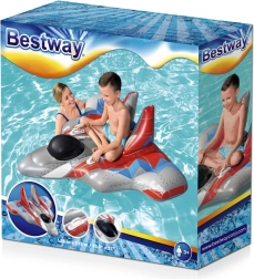 Begeben Sie sich auf ein Abenteuer mit dem aufblasbaren Jet Bestway, dem idealen Begleiter für Wasserspiele. Dank der stabilen Griffe meistern Sie selbst die wildesten Wellen mit absolutem Komfort. Realistische Grafiken und eine beeindruckende Größe von 136 x 135 cm werden jeden jungen Piloten erfreuen. Hochwertige Materialien und sorgfältige Verarbeitung garantieren Spaß am Strand oder im Pool.