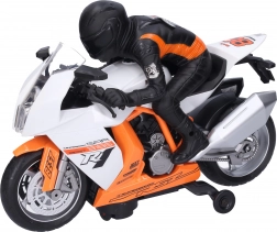 Das Motorrad hat die ideale Größe von 28 cm für bequemes Greifen und Handling. Zur Auswahl stehen 2 Farbvarianten – Orange und Weiß, die in jeder Sammlung großartig zur Geltung kommen. Die Stromversorgung erfolgt über 4× AA-Batterien (nicht im Lieferumfang enthalten).