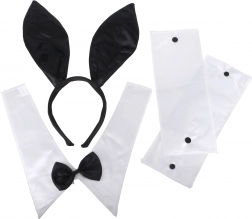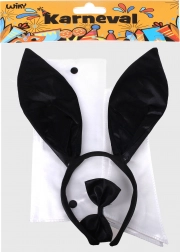 Haarreif mit Ohren, Fliege mit Kragen, Handmanschetten