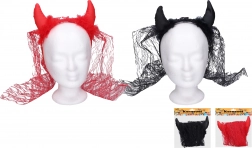 Verleihen Sie Ihrer Verkleidung einen höllisch guten Touch mit schwarzen Teufelshörnern mit Schleier. Der praktische Haarreif sorgt für einen bequemen und sicheren Halt im Haar, während der elegante Schleier einen geheimnisvollen und markanten Effekt erzeugt. Perfekt für Karneval, Halloween, Firmenfeiern und Schulveranstaltungen.