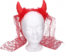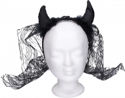 Hinweis: Kein Spielzeug. Geeignet als Kostüm-Accessoire für Erwachsene. Packungsinhalt: 1× Haarreif mit Hörnern und Schleier.