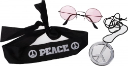 Verleihen Sie Ihrer Party die Atmosphäre von Freiheit und Leichtigkeit. Das Hippie-Karnevalsset ist der einfache Weg, in wenigen Augenblicken ein ikonisches Retro-Outfit zu zaubern. Die stylischen Accessoires lassen sich leicht mit Ihrer Kleidung kombinieren und unterstreichen den unbeschwerten Hippie-Stil.