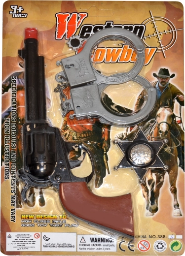 Auf ins WESTERN-Abenteuer! Dieses komplette Sheriff-Set für kleine Helden bietet alles, was man braucht, um die Stadt vor Schurken zu schützen: eine realistisch wirkende Pistole, sichere Handschellen und ein auffälliges Sheriff-Abzeichen. Perfekt für Spaß zu Hause, Karneval und Kostümspiele.