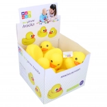 Diese klassische Gummiente macht jedes Kind beim Baden glücklich. Dank der kompakten Größe und des weichen, angenehmen Materials fördert sie die sensorische Entwicklung und die Feinmotorik. Die sichere Zusammensetzung erfüllt strenge Normen, daher ist sie bereits ab der Geburt geeignet.