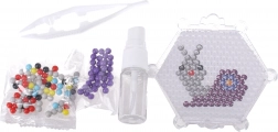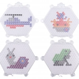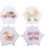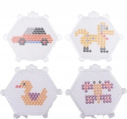 Hexagonale Platten mit Noppen halten die Perlen an Ort und Stelle und helfen, detailreiche Motive wie Auto, Hündchen, Entchen oder Schmetterling zu gestalten.