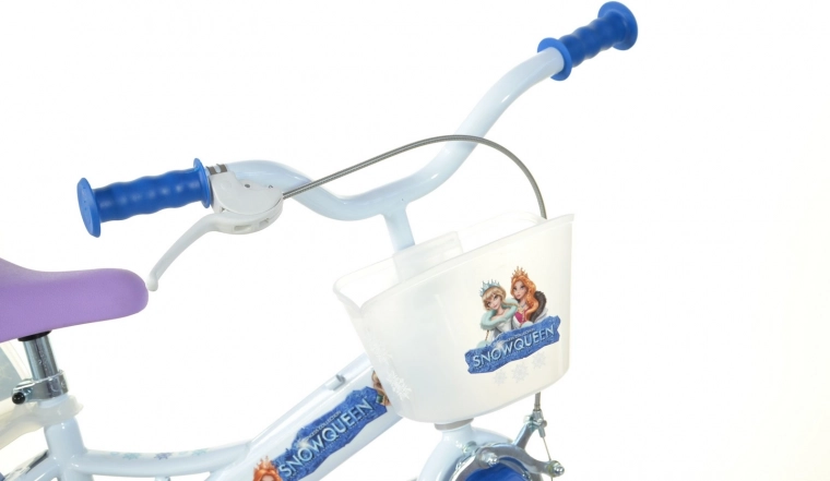 Leichtes und stabiles Kinderfahrrad 12" von Dino Bikes im Schneekönigin-Design überzeugt mit umfangreicher Ausstattung und sicherer Ausführung. Es hat Vollgummireifen ohne Pannenrisiko, eine Vorderradbremse und einen starren Gang (Starrlauf) für leichtes Anfahren. Nicht fehlen dürfen Stützräder, Korb und Puppensitz. Ideal für Kinder mit einer Körpergröße von 87–110 cm, Gewicht 6,5 kg, Tragfähigkeit 40 kg.