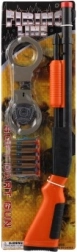 Das Set enthält alles, was für das Spielen eines Polizisten benötigt wird, einschließlich Gewehr, Munition, Handschellen und Abzeichen.