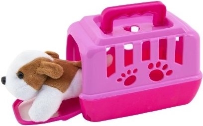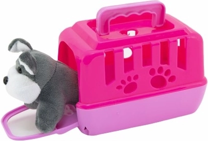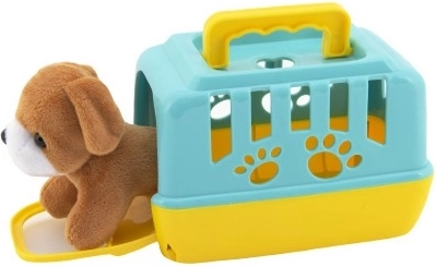 Dieses Set kombiniert einen weichen Plüschhund mit einer leichten Kunststoffbox mit Lüftungsöffnungen und Tragegriff. Kinder können die Pflege des Tieres nachspielen, es auf Ausflüge mitnehmen und zum Schlafen ablegen – alles auf spielerische und sichere Weise.