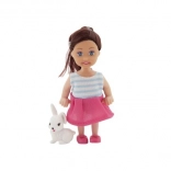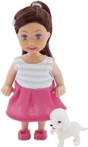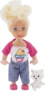 Puppe mit blonden Haaren und kleinem Haustier – ideal für interaktives Spielen.