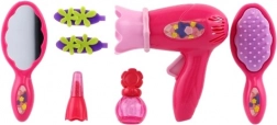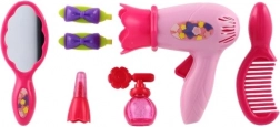 Das Set enthält sieben farblich abgestimmte Accessoires, einschließlich eines rosa Föhns und weiterer Notwendigkeiten für kreatives und sicheres Spielen. Die Produkte sind aus hochwertigem Kunststoff gefertigt, der langlebig und sicher für Kinder ab drei Jahren ist.