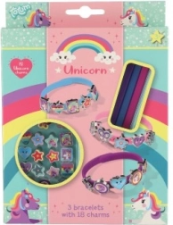 Entdecke eine Welt der Fantasie mit dem fröhlichen Armband-Bastelset im Einhorn-Thema. Im Set findest du drei elastische Armbänder in Rosa, Blau und Lila sowie achtzehn bunte Anhänger in Form von Sternchen, Herzchen, Schmetterlingen und Figuren. Jeden Tag kannst du einen neuen Stil kreieren – von dezent bis richtig auffällig.