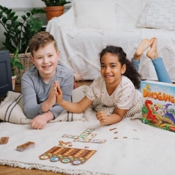 Beidseitiger Spielplan, 60 Dinosaurierkarten und zahlreiche Marker bieten Vielfalt und hohen Wiederspielwert. Fröhliche Illustrationen begeistern junge Spielerinnen und Spieler.