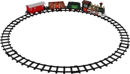 Das Paket enthält 8 Gleise, mit denen ein Rundkurs von 107 cm erstellt werden kann. Die Strecke besteht aus 6 Kurven und 2 geraden Gleisen. Für den Betrieb benötigen Sie 2 x AA Batterien für die Lokomotive (nicht im Lieferumfang enthalten).
